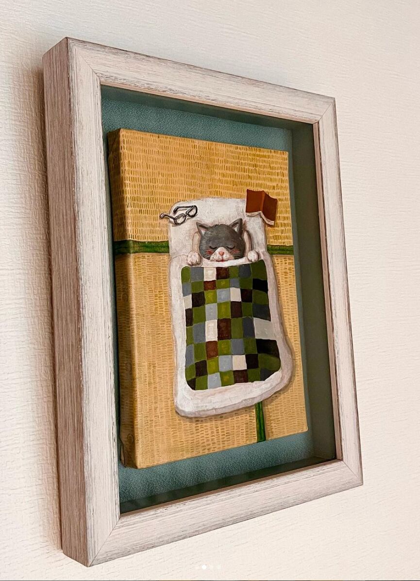 キャンバス側面まで畳を描き、キャンバスそのものが畳のミニチュアに見えるような表現をしました。