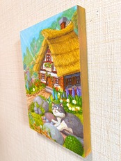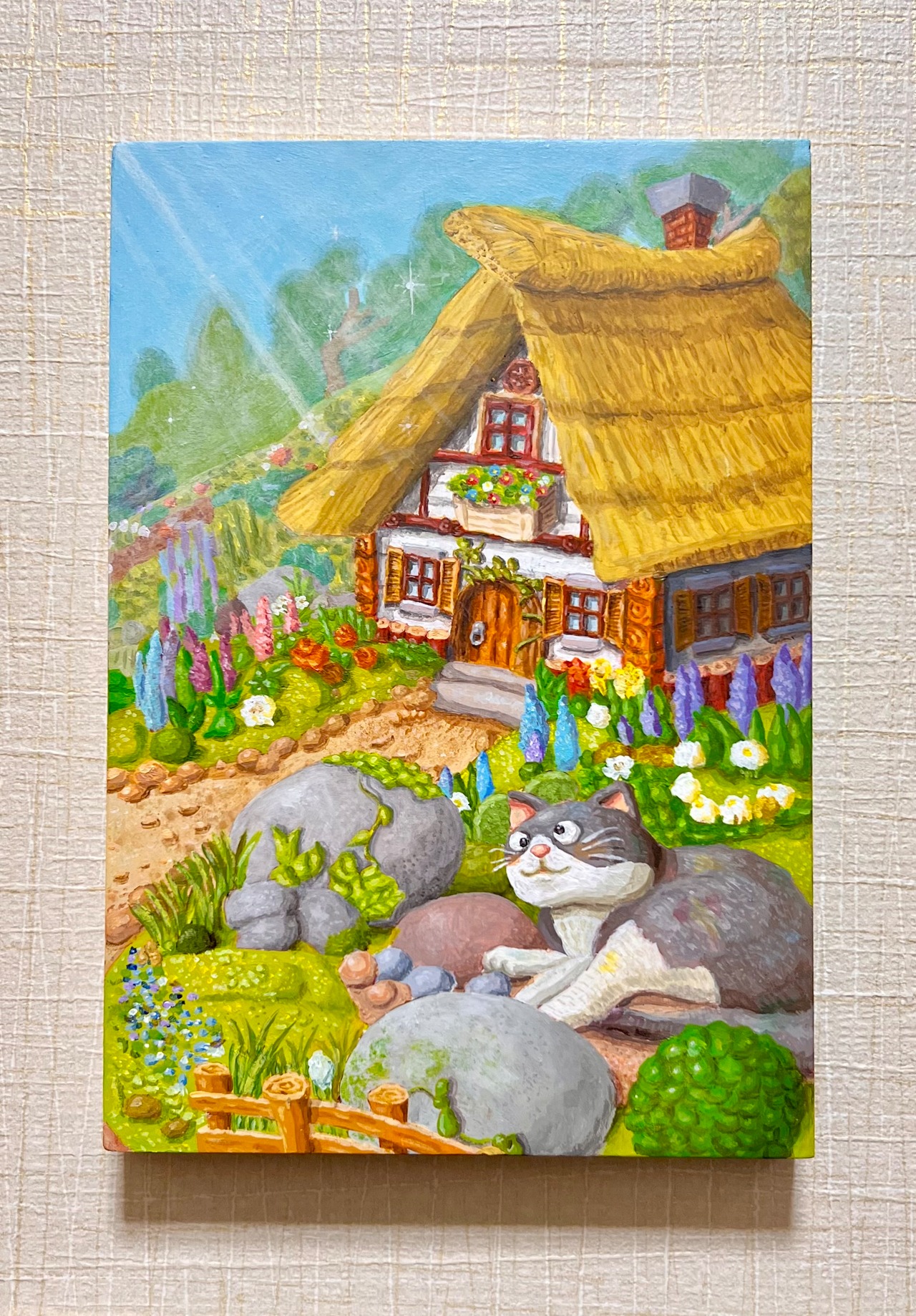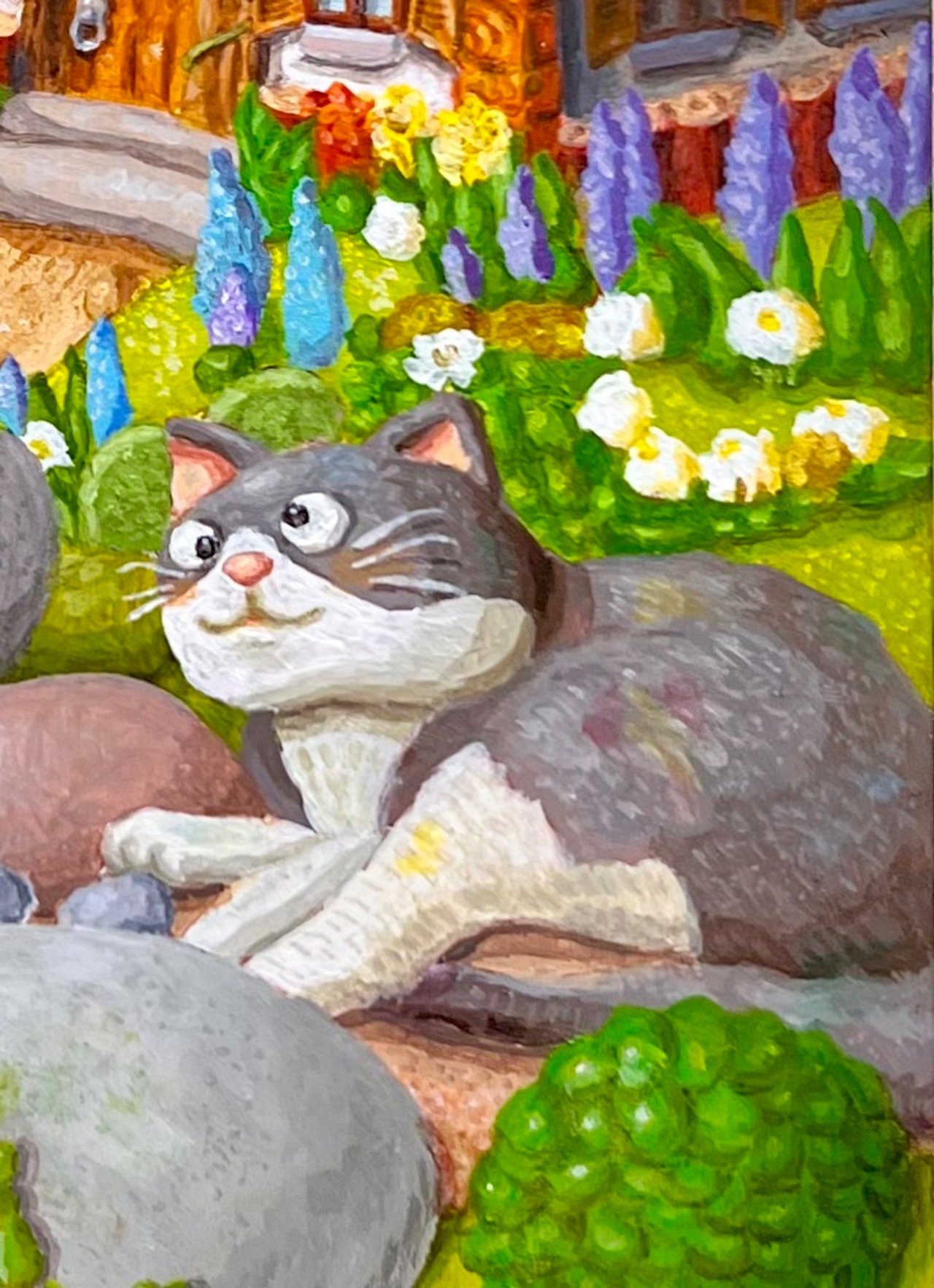 手前側とのメリハリをつけることによって、主役となる家とニャンコの立体感・存在感を出しました。